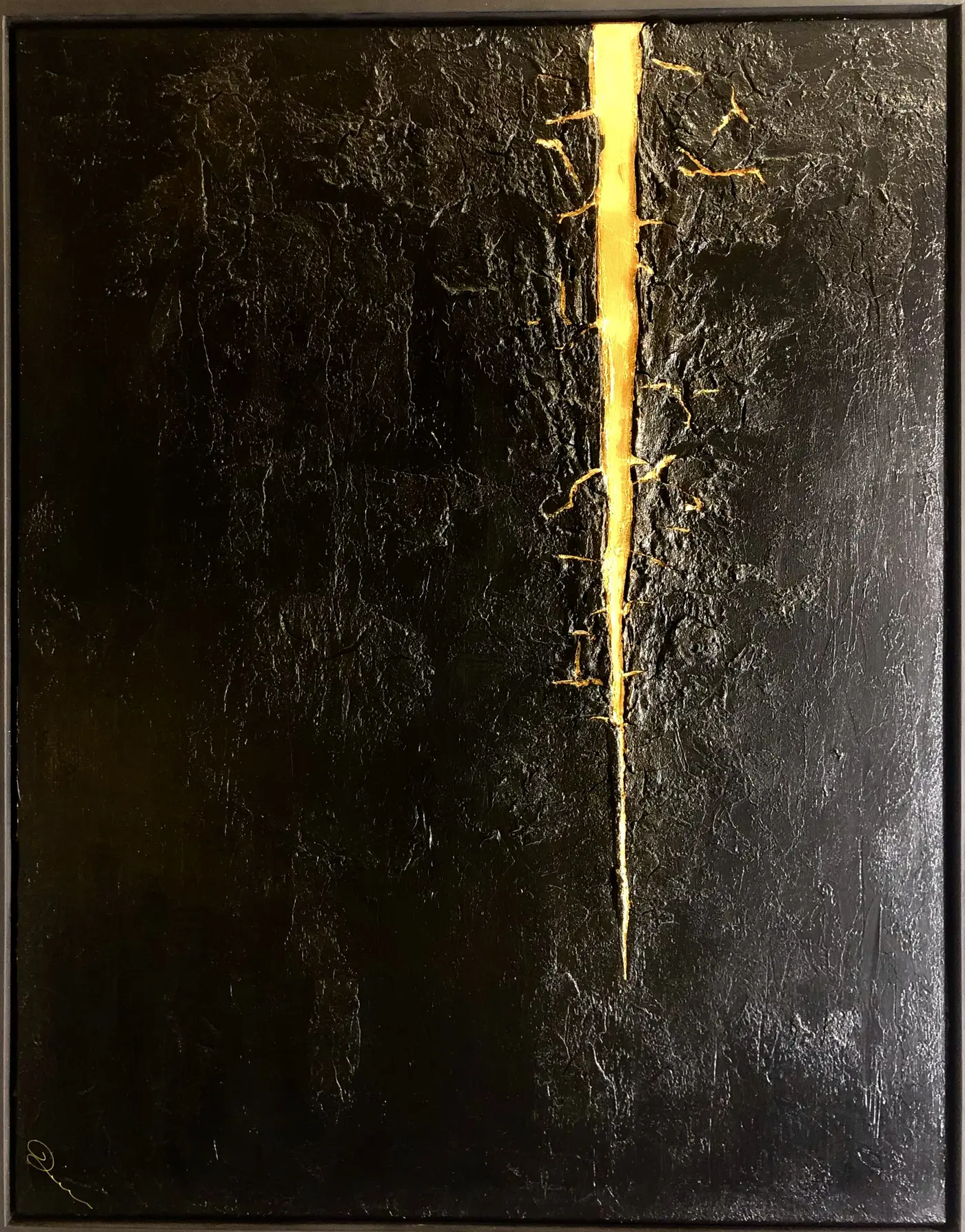 - Medium: Acryl met hoogwaardige pigmenten, marmermeel & Edelblad Goud (mixed media op canvas)